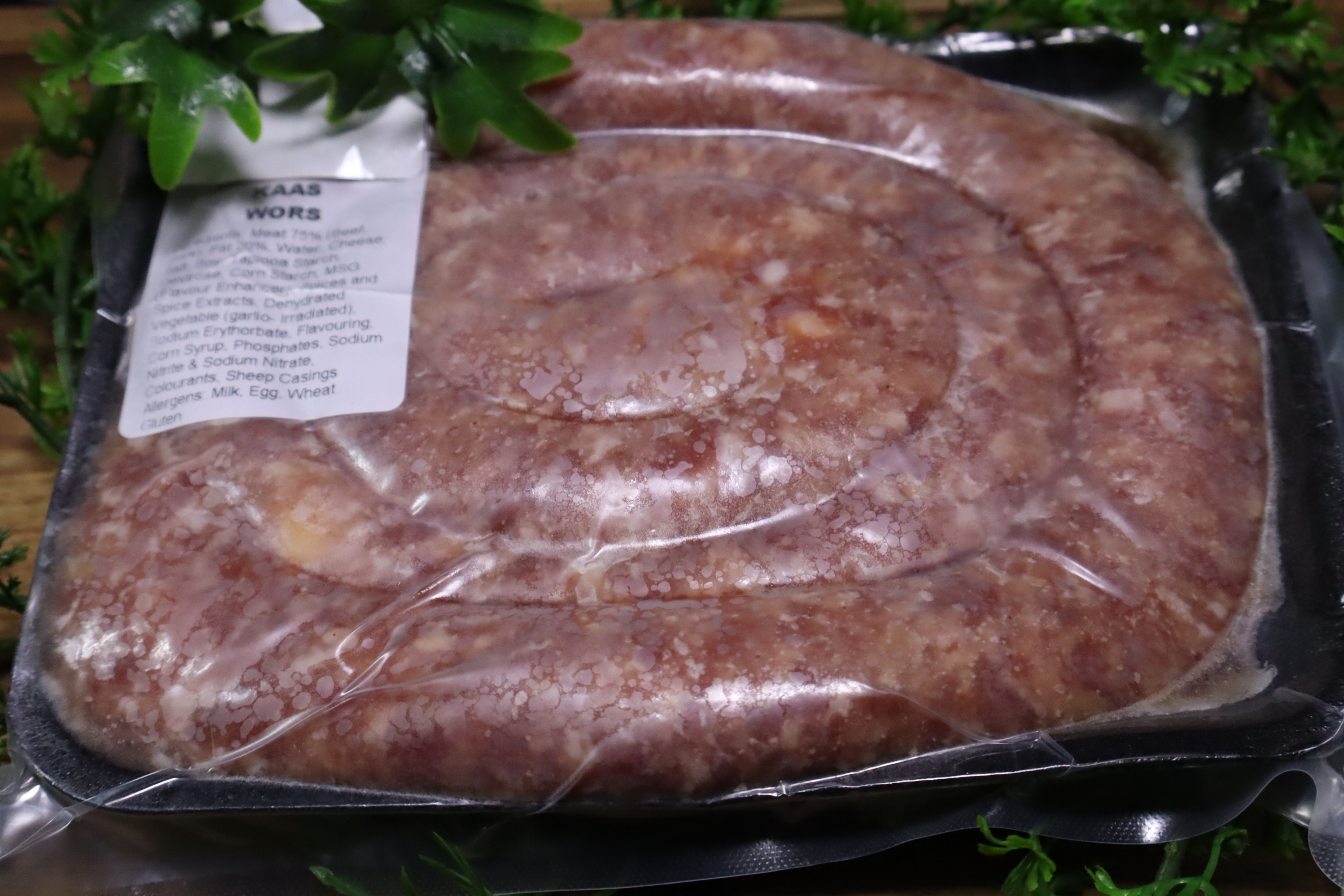 Ingredients: Meat 75% (Beef, Pork), contains Gluten
