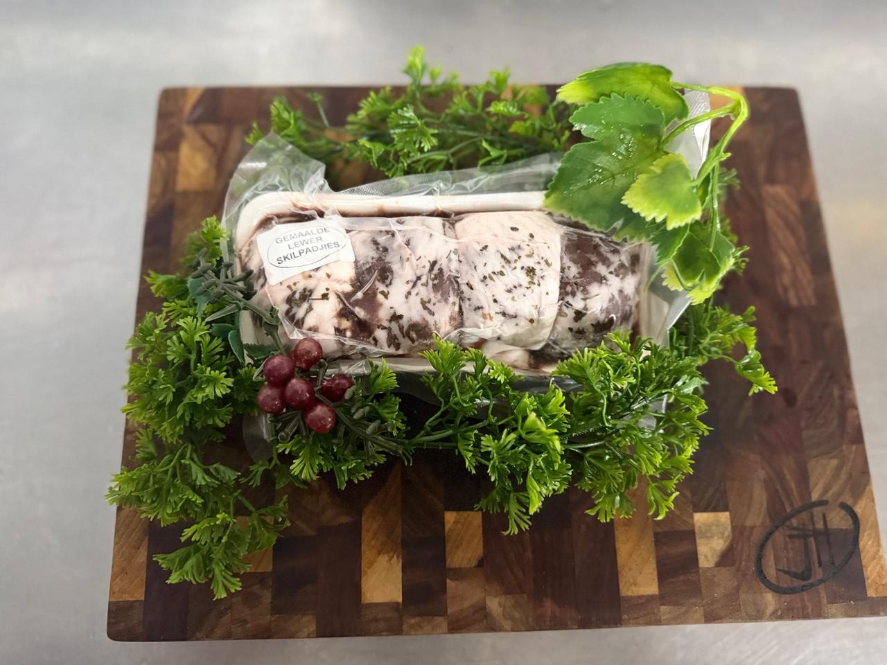 Also known as “lewer in netvet” is a must have for anyone that enjoys liver. This is slightly spiced sheep’s liver grounded wrapped in caul fat, which is the fatty membrane that surrounds the kidneys